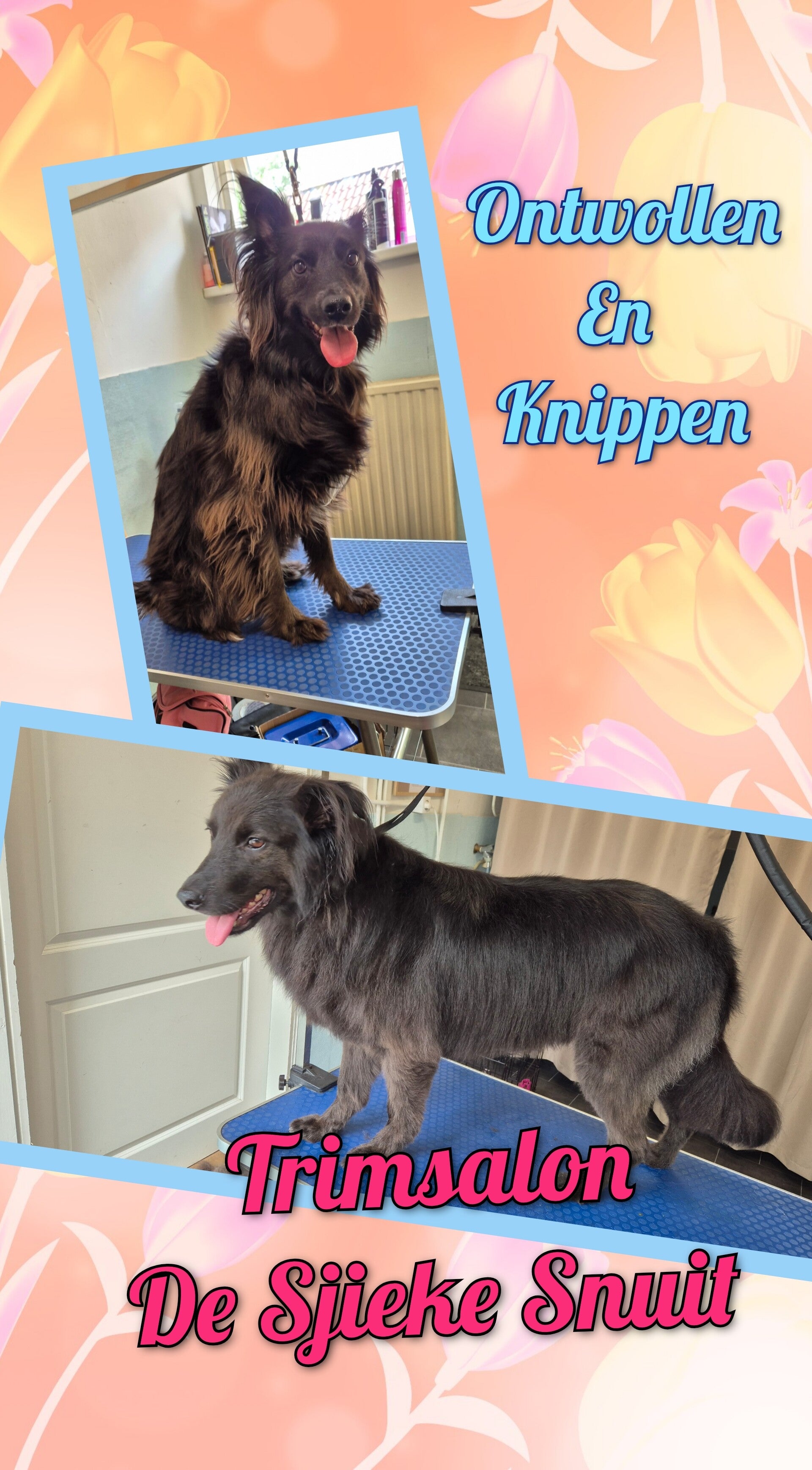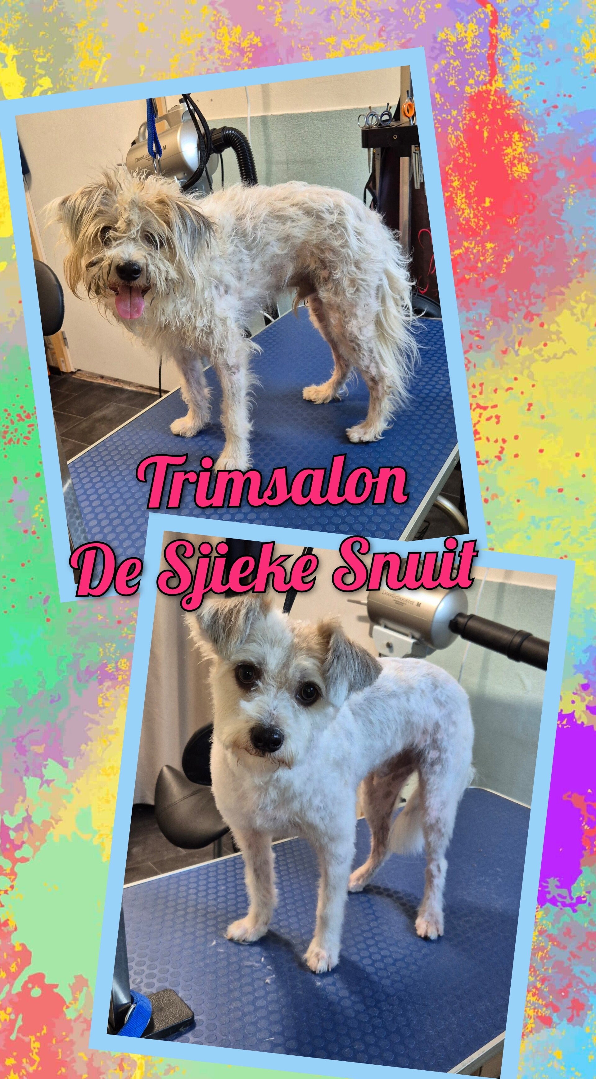 Bij kort stokharige honden en glad harige honden kan er voor de anti-rui behandeling worden gekozen . Hier zie je ook dat er veel losse haar uit de vacht is geblazen. Resultaat is dat u als eigenaar de komende tijd veel minder haar in huis hebt en uw hond minder kriebels ervaart.
