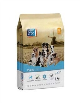 Geëxpandeerde, krokante brokjes. Een licht verteerbare complete voeding voor uw pups en jonge opgroeiende honden van kleine rassen. Carocroc Puppy bevat extra Omega 3 en 6. Een voeding die alle bouwstoffen bevat welke nodig zijn voor pups en jonge opgroeiende honden. Met "Carocroc Puppy bent u verzekerd van een veilige en probleemloze opfok. Carocroc Puppy kunt u verstrekken vanaf de 3e levensweek.